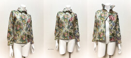 左右で別のゴブラン織りを使用したアシメトリーデザインのブラウスです。