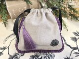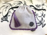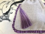 マスクケース アイリッシュリネンとフリルリボンとタッセルのマスクケース 巾着タイプ フリル紫バージョン