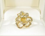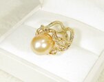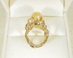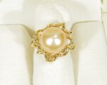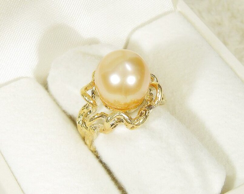 ゴールデンの美しい色合いと照りを見せる大粒の南洋真珠を留めた指輪です。枠はSV925製(18K張り)です。