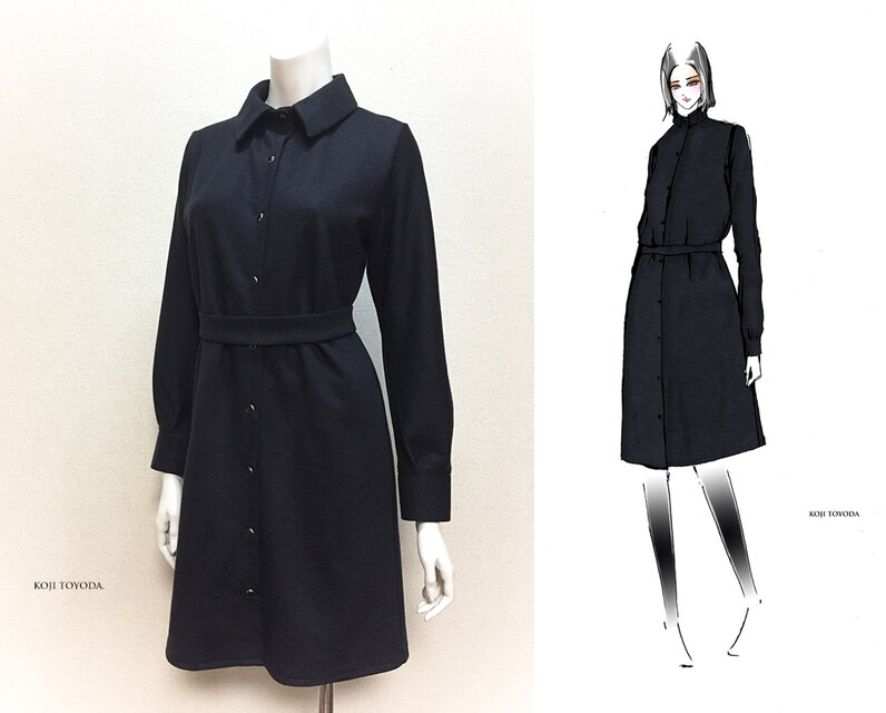【1点もの・デザイン画付き】ベルト付きネイビーニットシャツ型ワンピース(KOJI TOYODA)