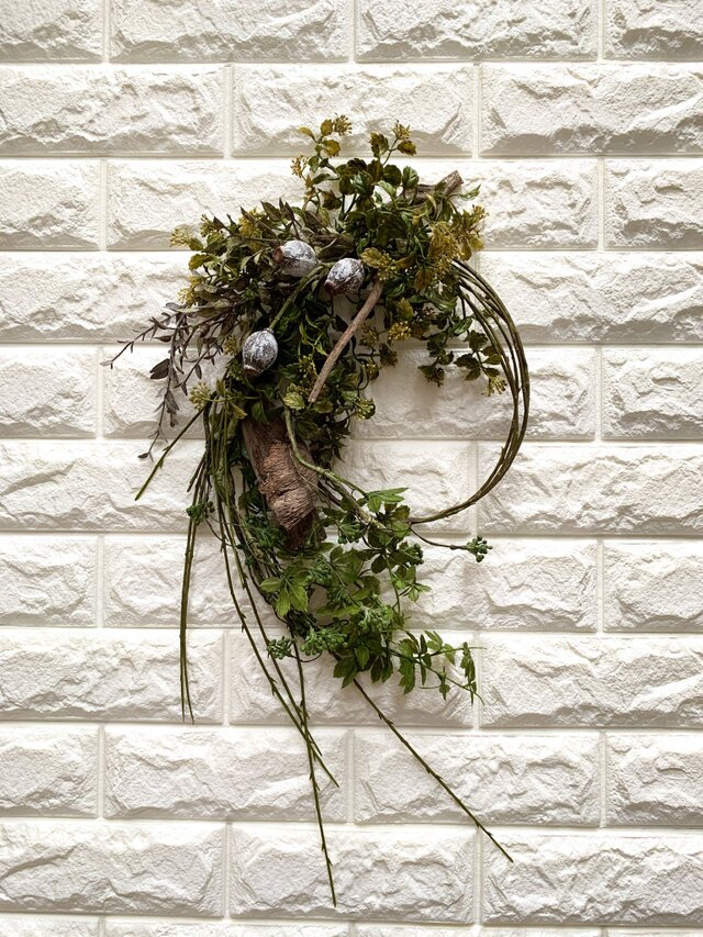 自然の草木をそのまま感じるように、日々の疲れを癒してくれるリースをと思い制作しました。