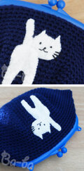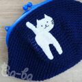 シンプルなネイビーブルーの編み地のがま口に、シロのアップリケをしました。