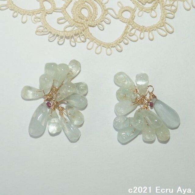 そこから自由な感じでアクアマリンを下げてゆきましたので、左右が少し違ったデザインになりました。