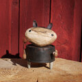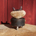 猫餌の空き缶を錆びさせ、バーナーで焼き、オイルを掛けて更に焼き、ちょっとへこませ、古びた感じに。