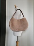 ※オーダー※ベージュソフトファーx帆布ワンショルダー三日月トートバッグ
