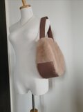ベージュの短毛の柔らかい肌触りのソフトファー(フェイクファー)に、持ち手と底布に帆布を合わせたワンショルダーバッグです。