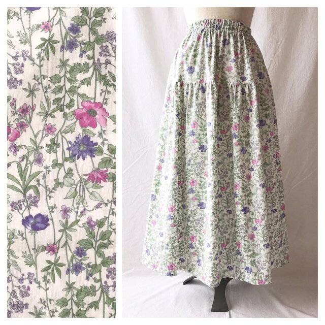 あったかナチュラルなティアードスカート(85cm丈)(ウインターガーデン:オフホワイト×ピンク)