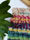 春の花畑みたいなきれいな色合いの、手編みのレッグウォーマーです。