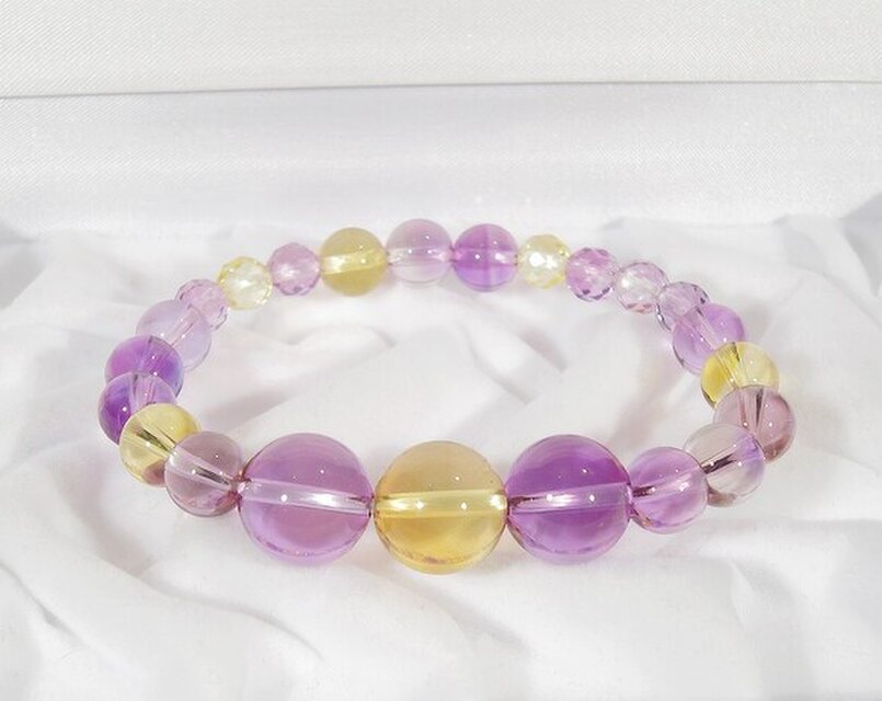 光沢と透明感がとても綺麗なアメトリンを使った天然石ブレスレットです。輝きが特に綺麗な多面カットのアメトリンも使っています。