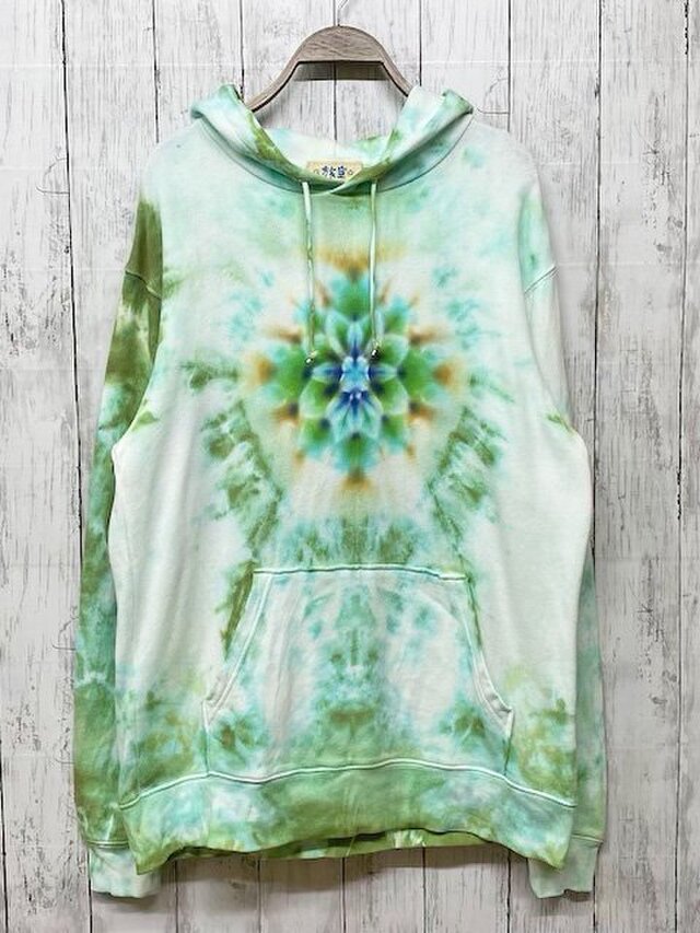Hippies Dye最新作!!タイダイ染めパーカー プルオーバー 曼荼羅 Lサイズ グリーン ムラ染め HD13-01