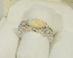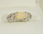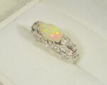 オパールの両先端を細いアーチで留めた、石を出来るだけ隠さずにプレイオブカラーがたくさん見える様にデザインした指輪です。