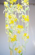 菜の花畑でアライグマの男の子と女の子が仲良くお話しているイメージで作ったモビールです。