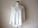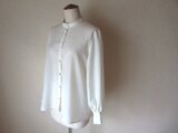 ボタンドカフスのシャツブラウス*コットンローン 綿 スタンドカラー 白 フォーマル お洒落着 入学式 パーティー