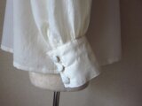 袖の裾にギャザーをしっかりときかせ、小さめのくるみボタンで止めているデザインが、アクセントになっています。