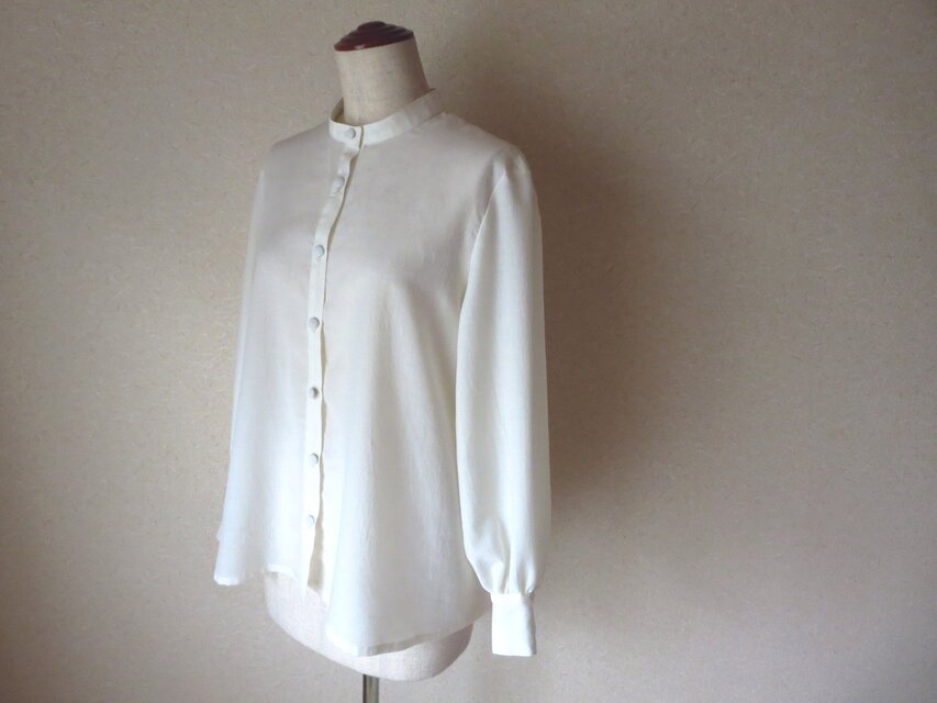 高級感のある、ローンの生地を使い、長袖のシャツブラウスを作りました。