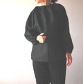 首元と袖口にふんわり緩やかなゴムシャーリング、子供っぽくなりすぎない女性らしいフォルムのデザインです。