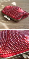 ばあば作☆大きめ・総ガラスビーズのスクエアがま口(metalred・1246)