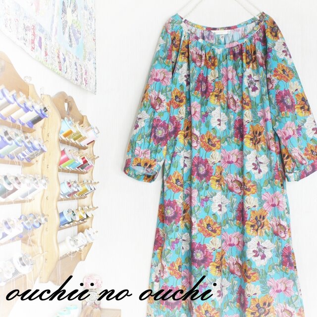 リバティタナローン2020秋冬コレクション<Poppy>(ポピー)でお作りしましたラグランネックボタンギャザーワンピースです。