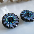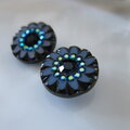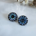 スワロフスキーラインストーン フラワーデザイン ヴィンテージボタンイヤリング/レトロボタンイヤリング スモーキーブルー