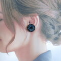 フラワーモチーフの高級ヴィンテージボタンをイヤリングにいたしました。
