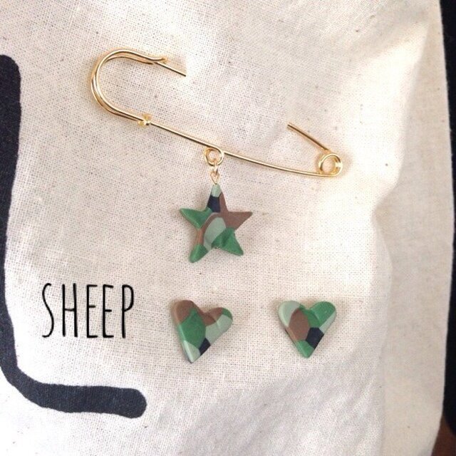 H様予約品 カモフラのピンとピアスのセット