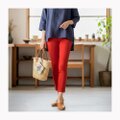 着るだけで華やぐ。スキニーストレートパンツ 華やぎレッド 美脚ストレッチ 大人女性向け 7~13号 通年OK