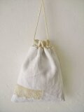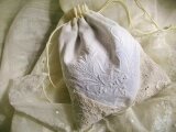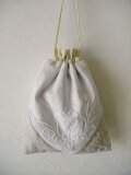 フランスアンティークの手刺繍ファブリックを使った巾着ポーチです