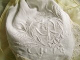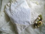 白いリネン地に丁寧に細かく手で刺繍されています。