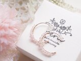 「小さな天然石のリース」の新作はこれからの季節のお楽しみ、桜の花をイメージしています。極小サイズのローズクォーツを使って散りゆく花の儚さを表現しています。