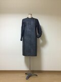 黒と白のモダンな織り柄模様が美しい大島紬のシャツワンピースです。
