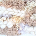 お部屋に馴染みリラックス出来る空間を作れるよう、ホワイトからベージュカラー、ひよこ色等の優しいお色味でまとめ、スクエア型のタペストリーに仕上げました。