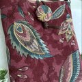 表の布は赤紫色の紬の花柄の着物(シルク100%)の生地を使用しています。