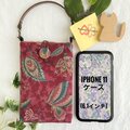 紬(正絹)の着物リメイクしたスマホポーチです。