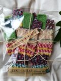 軽くて丈夫なオパール毛糸を使っています。ネットに入れてご自宅の洗濯機で洗えるので、お手入れがとても楽ですよ!