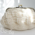 ふんわりと暖かい毛糸を格子模様に編み上げ、がま口に仕上げました。