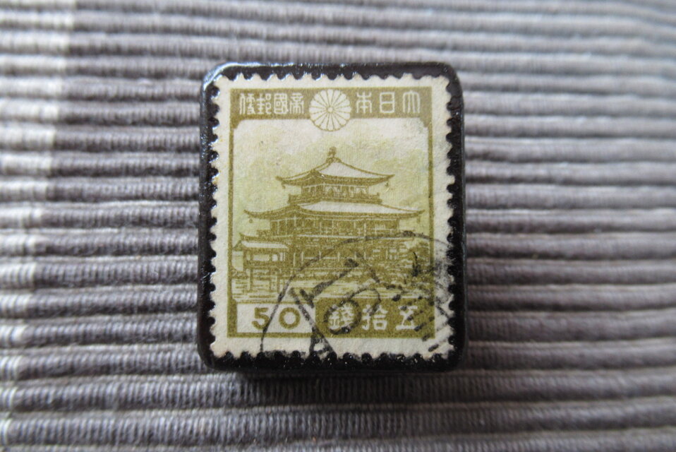 ★★アップサイクル 日本「金閣寺」切手ブローチ7077