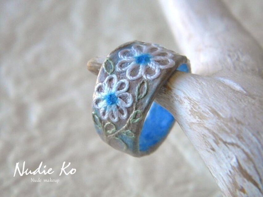 素朴な素材の、ほろ可愛い感じなリングになりました。
