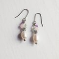 大粒の淡水パールと、小さな春色ストーンを組み合わせたピアスです。