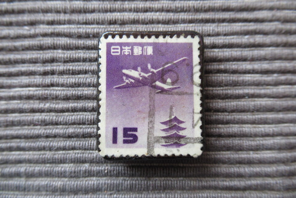 ★★アップサイクル 日本 昭和切手ブローチ7079