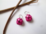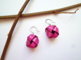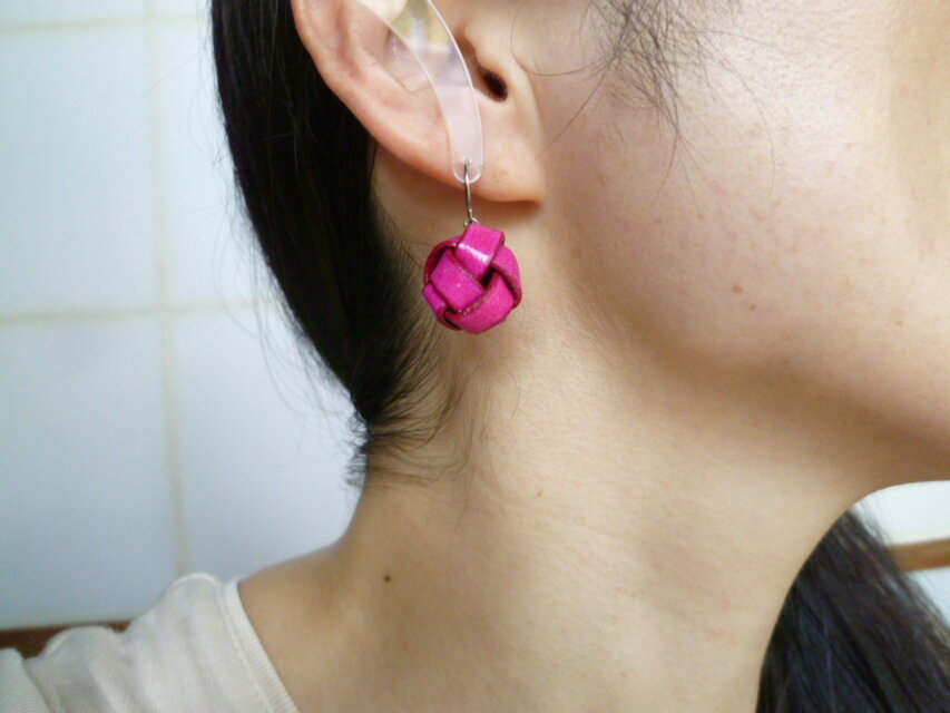 ピンクがかった鮮やかなパープルの、革の玉ピアスです。(実物は画像よりもう少し明るい色味です)