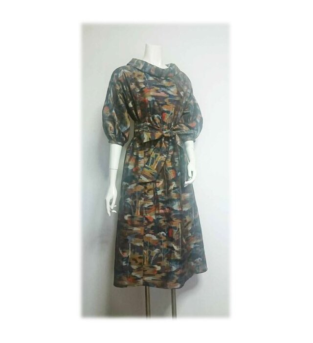 大島紬からリメイクしたワンピース。