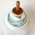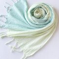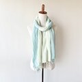 本日無事に受け取りました。 想像していた通りにブルーとミルクがかったホワイトの色合いがとても綺麗でした。 この度は娘へのプレゼントに購入しましたが、一緒に色々な巻き方を試すのが今から楽しみです。 また機会がありましたら、よろしくお願いします。