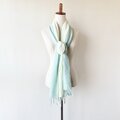さらウール*WOOLSILK*薄桜色×青竹色*ウールシルクストール品のある柔らかな色合いと艶のストールに惹かれました。 どれも素敵でかなり迷いましたが、2枚購入致しました。 春になり服装が軽くなりますので、このストールをつけるのが楽しみです。 金属のネックレスが苦手なので、ストールがアクセントになります。 大切に致します。 素敵なストールをありがとうございます。