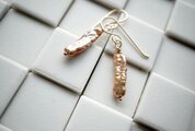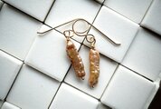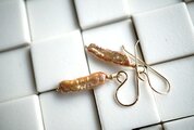 長さ22mm程度のスティックパールを1粒下げたピアスです。