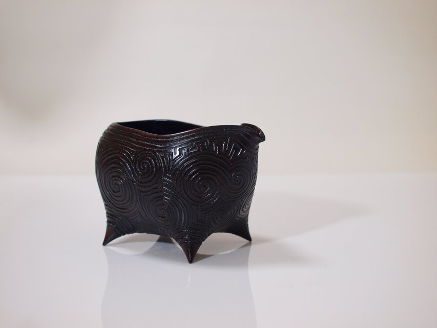 縄文模様の彫刻をまわりに彫った片口。
