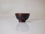 月と太陽の模様をまわりに彫ったぐい呑。