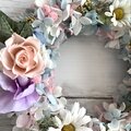 ブライダルピンクのバラとマーガレットを合わせた春風を感じさせるようなリースです。