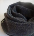 チャコールグレー、こげ茶、緑、紺の4色を組み合わせて織りました。
