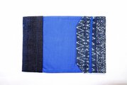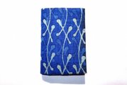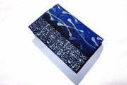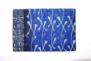 麻布にオタマジャクシ柄のようなバティックと、藍染めの型押しの