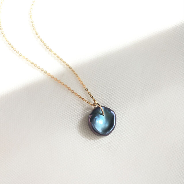 【K14GF】ブラックブルー系ケシパールの1粒チャームのみ